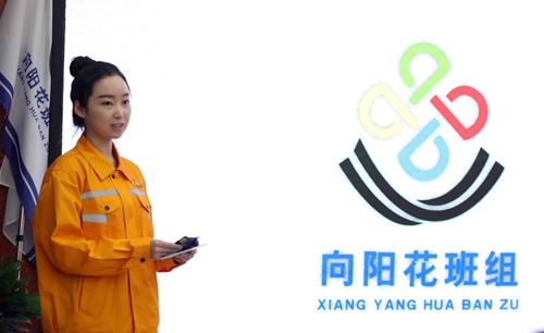 橘黄色的工装、蓝色的制式发卡是她们的日常着装,每次从满是钢筋混凝土的施工工地走过总能引起现场围观。她们是一群陕西姑娘,平均年龄只有22岁。她们有一个美丽的名字叫“向阳花”。