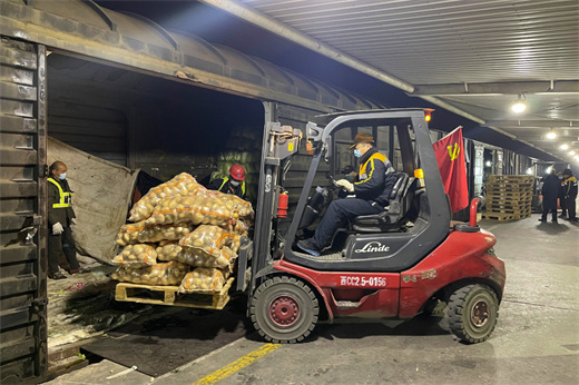 “叉车排列好,托盘提前划分区域,列车入线转运要轻拿轻放,蔬菜一定要交错摆放,肉类品要和物资区分开,叉车动轮一定注意安全。”援助物资专列抵达前,西安国际港站K1线货场内,货运车间主任朱杰鑫现场指挥着。