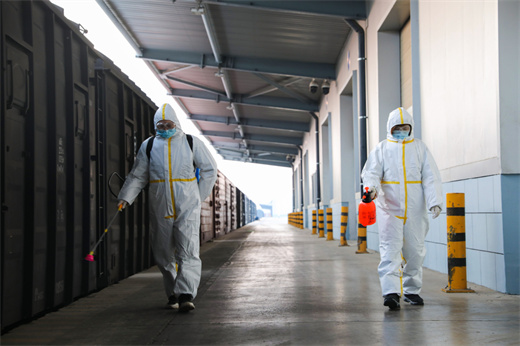 西安国际港站作为中欧班列(西安)唯一装车站,又是援助物资集中转运站。面对疫情,该站第一时间落实中国铁路西安局集团要求,围绕集中管控、防疫消杀、核酸检测等工作,在启动应急预案的同时,成立”党员先锋突击队”,组织力量每4小时对中欧班列作业区等关键场所进行全方面消杀,及时阻断疫情传播链条。