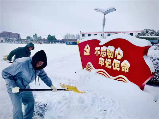 辽宁环保西部水厂党员干部不畏严寒,铲除积雪。(周婧莹 摄)