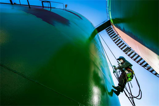 江西丰城电厂顺利完成1、2号除盐水箱共1600平方米防腐补漆工作。(胡俊英 饶官荣 摄)