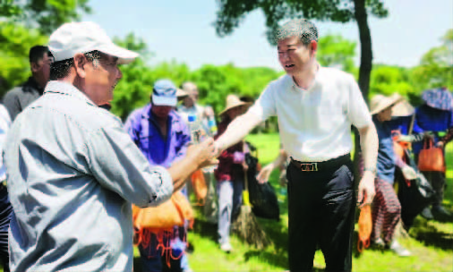 昨日上午,金山区人大常委会党组副书记、副主任、区总工会主席朱喜林来到枫泾镇城市建设管理事务中心,他亲切嘱托:“因为有你们的奉献,才让我们拥有一个干净、整洁的环境。希望大家在做好个人防暑降温防护措施的同时,也要劳逸结合,错峰作业。”区总工会党组书记、副主席徐红强来到新卫高速路口,对高温酷暑下奋战在第一线的公安交警支队进行慰问。