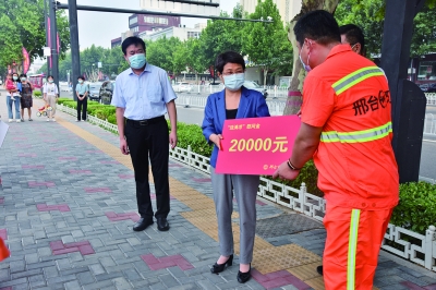 为了体现工会组织对高温露天作业一线职工的关爱,日前,河北省邢台市总工会开展了“送清凉”活动,市委副书记刘文萍,市一级巡视员、市总工会主席尹全峰分别慰问了一线环卫工、一线执勤交警和金融中心3号楼项目建筑工人,为他们送去了慰问金和慰问品。