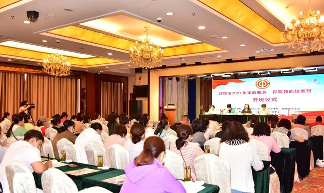 6月21日-6月30日,由酒泉市总工会主办、敦煌市总工会承办的2021年敦煌市家政服务和育婴技能培训班圆满结束,共有100名学员参加此次培训。本次培训班包括家政服务员、育婴员两个工种的培训,采取现场授课、实操演练方式进行。家政服务员培训班为42个学时,培训内容主要包括再就业优惠政策、服务礼仪、家政服务等基本知识。育婴员培训班为60个学时,培训内容主要包括婴幼儿护理、科学喂养、产后康复、就业指导等。