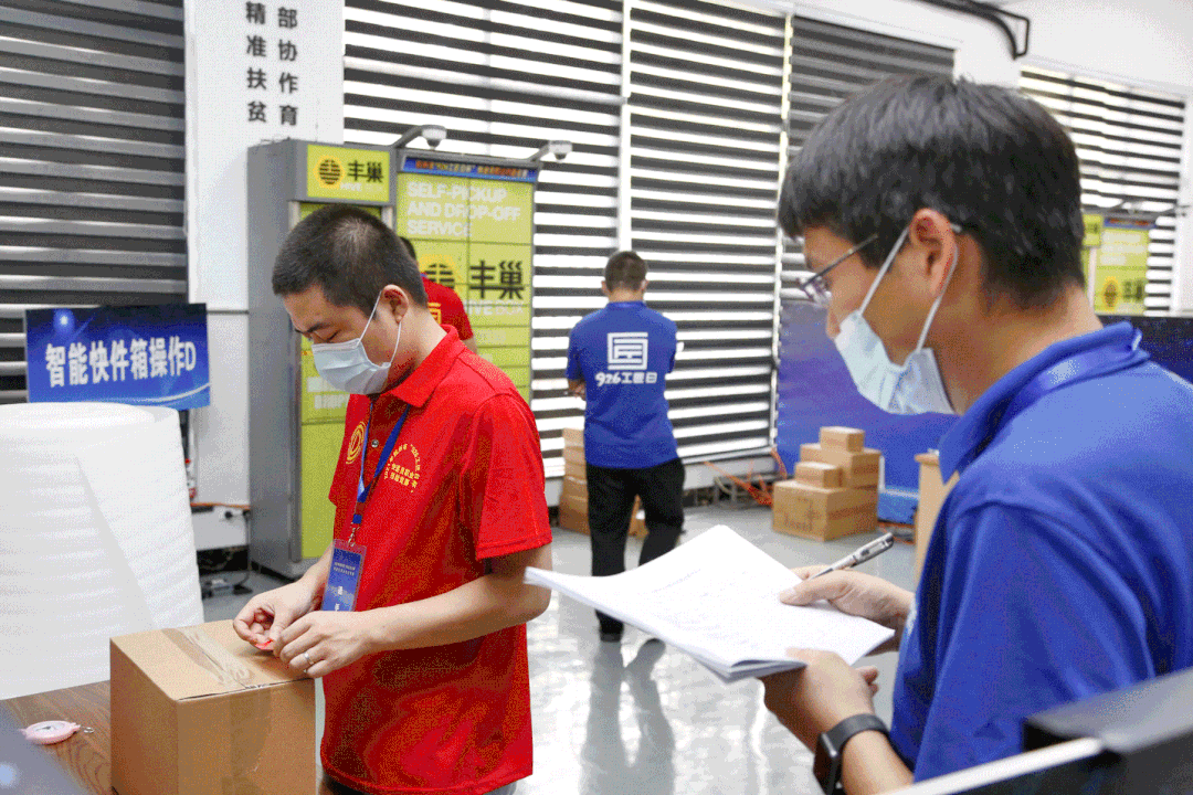 比赛现场,所有选手必须在规定时间内在指定场所完成相关业务的实际操作。实操内容涵盖快件收寄规范;投放快件操作规范;快件绿色包装规范与特殊物品包装技术;疫情防护操作规范等多方面内容,充分检验了快递员业务理论知识、收派服务礼仪、快件绿色包装、派送路线设计、禁寄物品识别等方面的能力和素质。