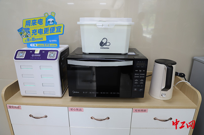 为了解决新就业形态劳动者的实际需求,“暖蜂小屋”里既有满足喝水、如厕、休息的基本设施,又有满足应急需求的电动车充电桩、医药箱、针线包、手机充电宝,也有提高生活品质的冰箱、微波炉、阅览架、咖啡饮料,还有疫情防控需要的体温测量器、一次性口罩、消毒液、卫生纸等。这样的“暖蜂小屋”全市共有10家。