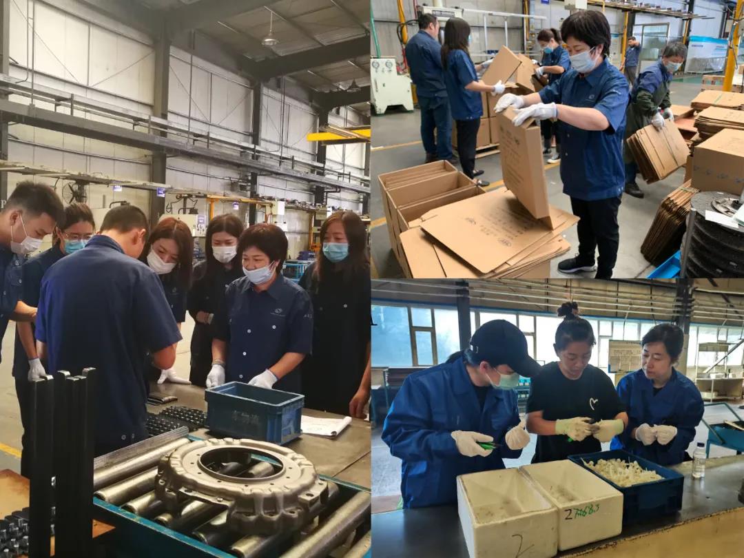8日一大早,在吉林省通用机械(集团)有限责任公司净月厂区,省总工会机关干部在经过分配岗位并进行劳动培训后,马上就投入到岗位实操工作中。“咱们现在要做的是选档臂,就是汽车挂挡时用的零件,你们三个人,两个人安装橡胶减震垫,一个人安装开口销。”装配车间有着十多年工作经验的老师傅梁立新一边演示一边仔细讲解。省总工会机关干部学得仔细认真,随后马上投入到工作当中,很快就形成了一个小型流水线作业,一件件组装成品送到下一个装配工位。