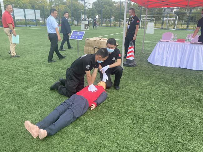本次职业技能竞赛分为团体赛和个人赛,团体赛设置了单兵徒手队列、交通指挥手势、应急消防、搜救犬训导4个项目,个人赛分为应急棍术、心肺复苏、违禁物甄别3个项目。