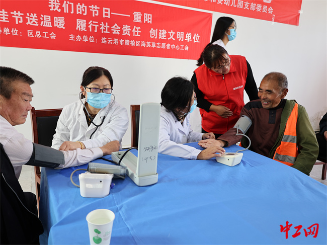 10月13日,江苏省连云港市赣榆区总工会组织开展“我们的节日·重阳”主题活动,活动以赣榆区海英草志愿者为主。活动中,志愿者们为社区孤寡老人义诊,和社区老人一起做重阳水果拼盘,并为老人送去鲜花、牛奶等慰问品。(伏在江)