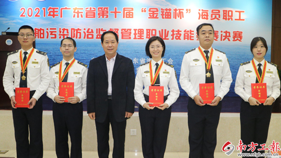 中工网讯 据广东省总工会客户端“粤工惠”消息,10月21日至22日,广东省海员职工第十届“金锚杯”船舶污染防治监督管理职业技能竞赛在广东海事局举行,来自深圳、汕头、湛江以及广东海事局各分支局的22支队伍共66名选手参加了本次比赛。省海员工会主席许国胜出席颁奖仪式。