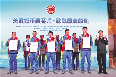 广州市总工会为广州优秀城市美容师代表赠送慰问品 罗瑞雄/摄