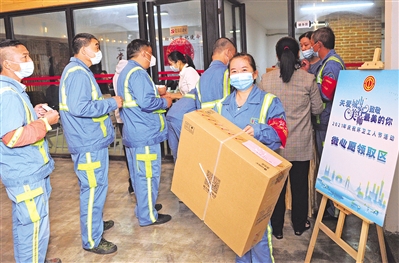 环卫工领取“微心愿”大礼包 罗瑞雄/摄