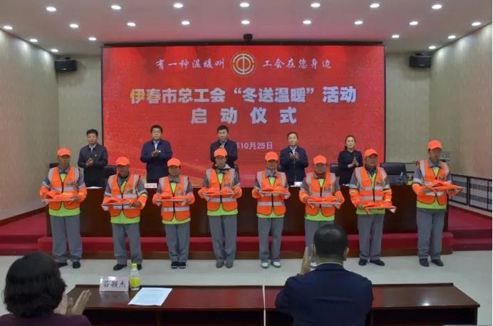 中工网讯 据黑龙江省总工会微信公众号“黑龙江工会”消息,10月25日,黑龙江省伊春市总工会举行“冬送温暖”活动启动仪式,为环卫工人发放服装,送上党和政府的关怀、工会组织的温暖。