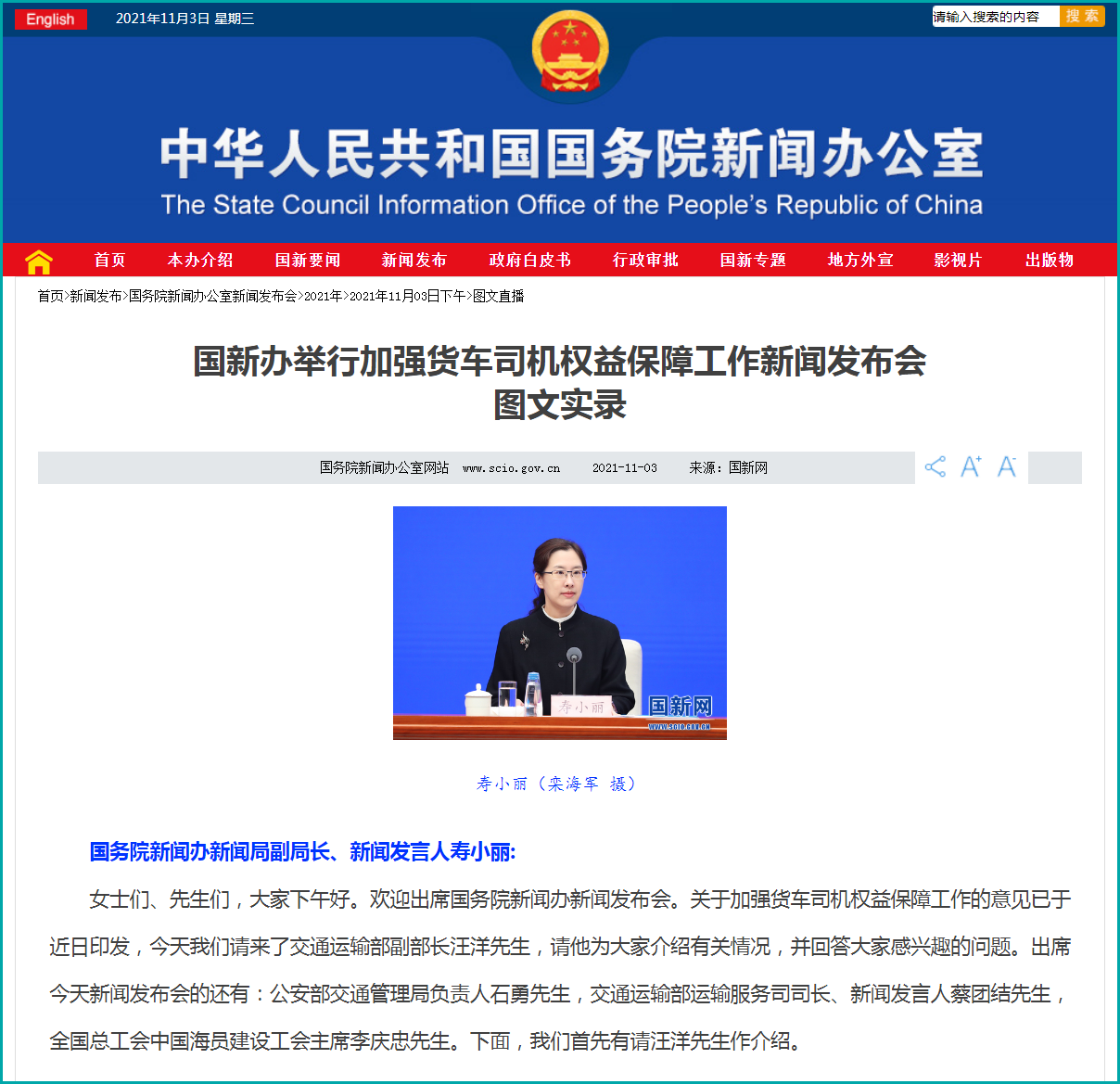 中工网讯 11月3日,据国新办举行的加强货车司机权益保障工作新闻发布会消息,日前,交通运输部会同公安部、人社部、全国总工会等16个部门联合印发了《关于加强货车司机权益保障工作的意见》。全国总工会中国海员建设工会主席李庆忠表示,全国总工会高度重视货车司机等新就业形态劳动者的权益保障工作,主要通过建会入会和维权服务等工作维护广大货车司机的合法权益。