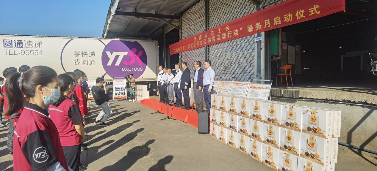 11月11日,海南省总工会在海口市举行“工会进万家·新就业形态劳动者温暖行动”服务月启动仪式,顺丰、京东、德邦、圆通、申通等企业的快递小哥代表参加启动仪式。海南省人大常委会副主任、省总工会主席陆志远出席仪式并讲话。