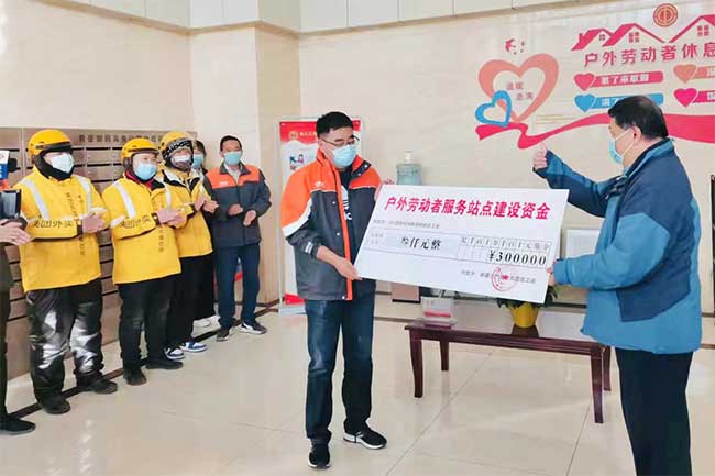 慰问组来到快递站点,看望慰问快递小哥,为新入会的美团快递会员送上装有手套、饭盒、女职工保护条例和职工维权手册的暖心大礼包,以及致快递小哥的一封信,并组织专家为快递小哥开展义诊活动。其间,慰问组与快递小哥进行了交流,详细了解他们的生活和工作情况。