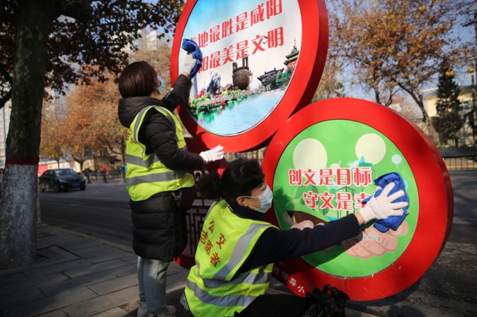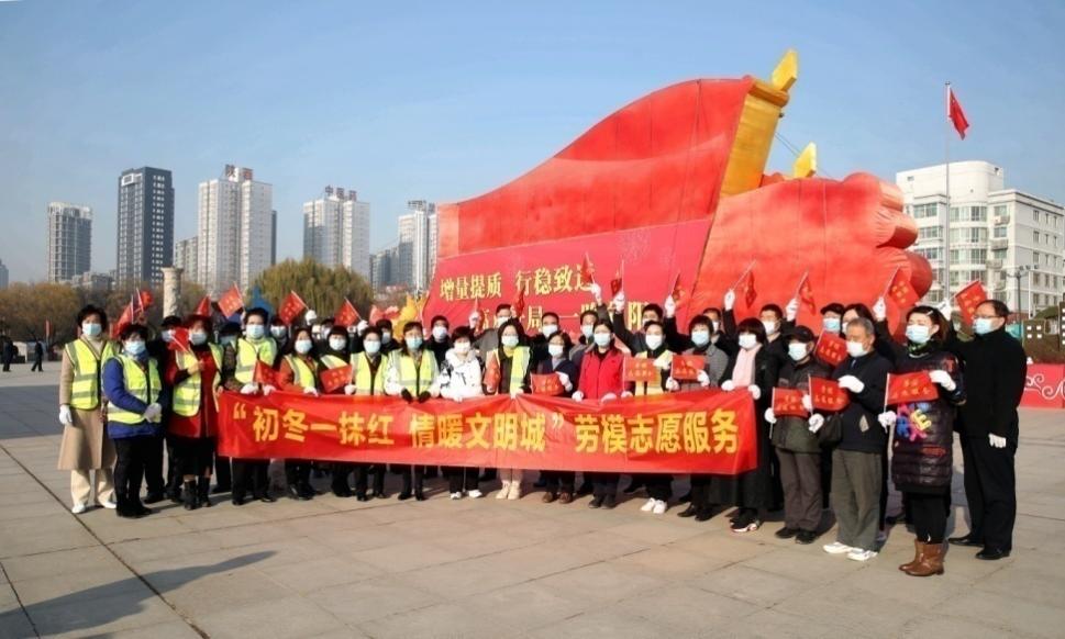 12月4日,冬日暖阳。在风景秀丽、波光粼粼的咸阳湖广场,陕西省咸阳市总工会正在这里开展一场“初冬一抹红,情暖文明城”劳模志愿服务行动。市总工会领导与市域部分全国省市级劳模周末一同劳动、携手同行,为文明城市更文明增光添彩。