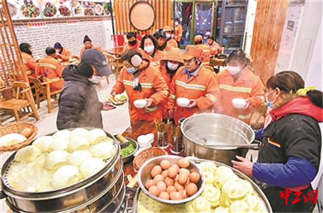 今年以来,洛阳市为全市万余名一线环卫工人提供免费早餐,费用由洛阳市县两级工会、各县(区)财政和环卫企业进行补贴。工人日报-中工网通讯员 黄政伟 摄