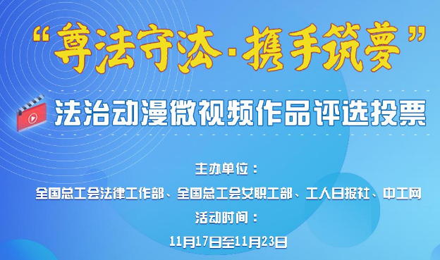 中工网讯 由全国总工会法律工作部、全国总工会女职工部、工人日报社、中工网联合主办的以“尊法守法·携手筑梦”为主题的法治动漫微视频作品征集活动自9月份启动以来,得到各省(区、市)总工会、各全国产业工会的积极响应,共收到230部动漫和微视频作品。