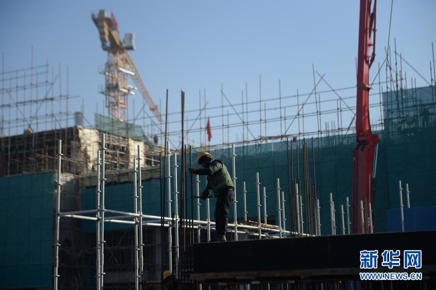 工人在河北雄安新区容东片区安置房项目工地施工(12月16日摄)。新华社记者 金皓原 摄