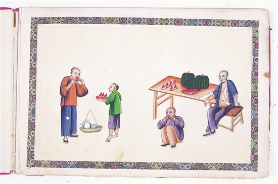 卖西瓜图 选自广州市井风情通草画册(19世纪 通草水彩画 广州博物馆藏)