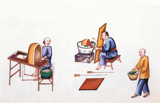 随着时代的发展,这些传统手工业有不少已衰落甚至消失了,但今天我们依然可以通过清代外销画,让传统手工行业的技艺和制作流程活灵活现地呈现眼前,感受属于广州的独特记忆。