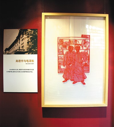 剪纸《高君宇与毛泽东》(作者:张月升、辛翠平)封玥婷摄