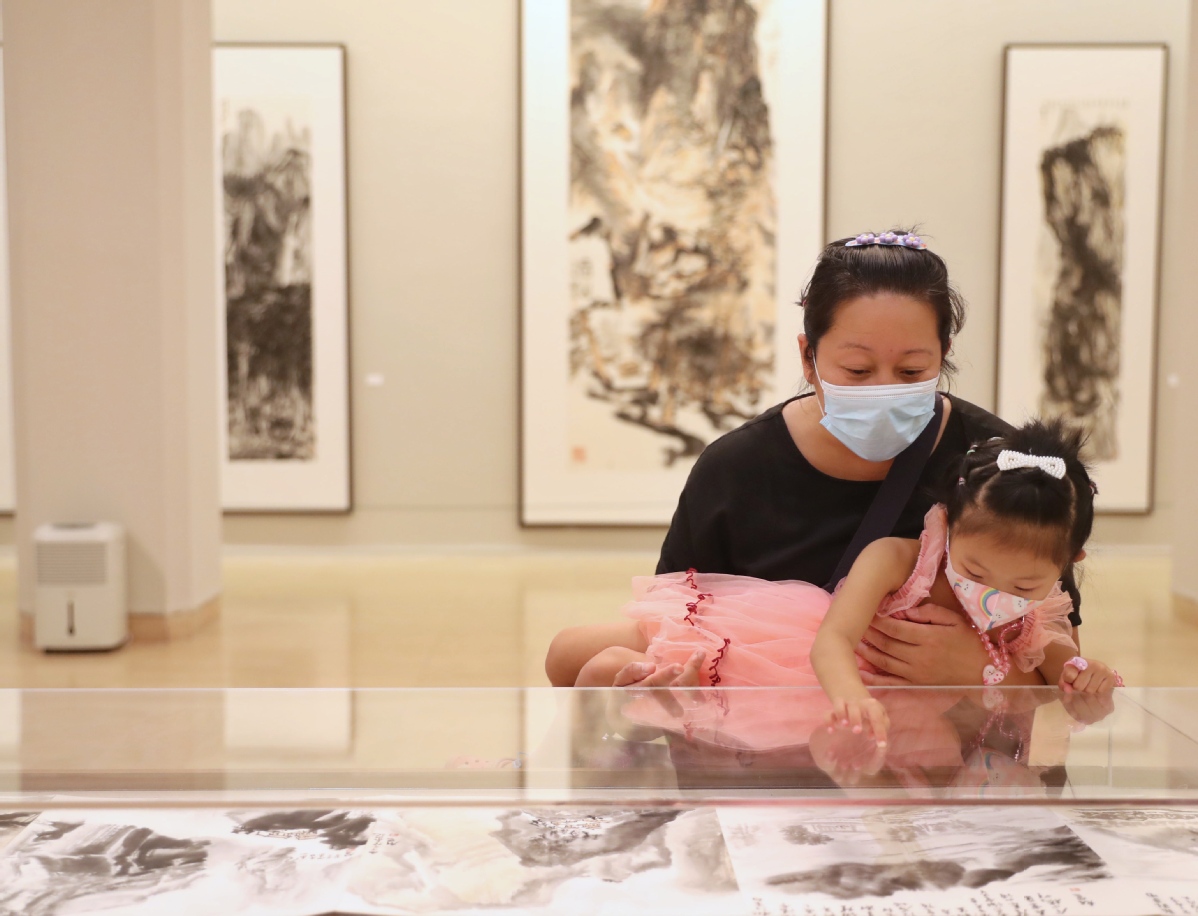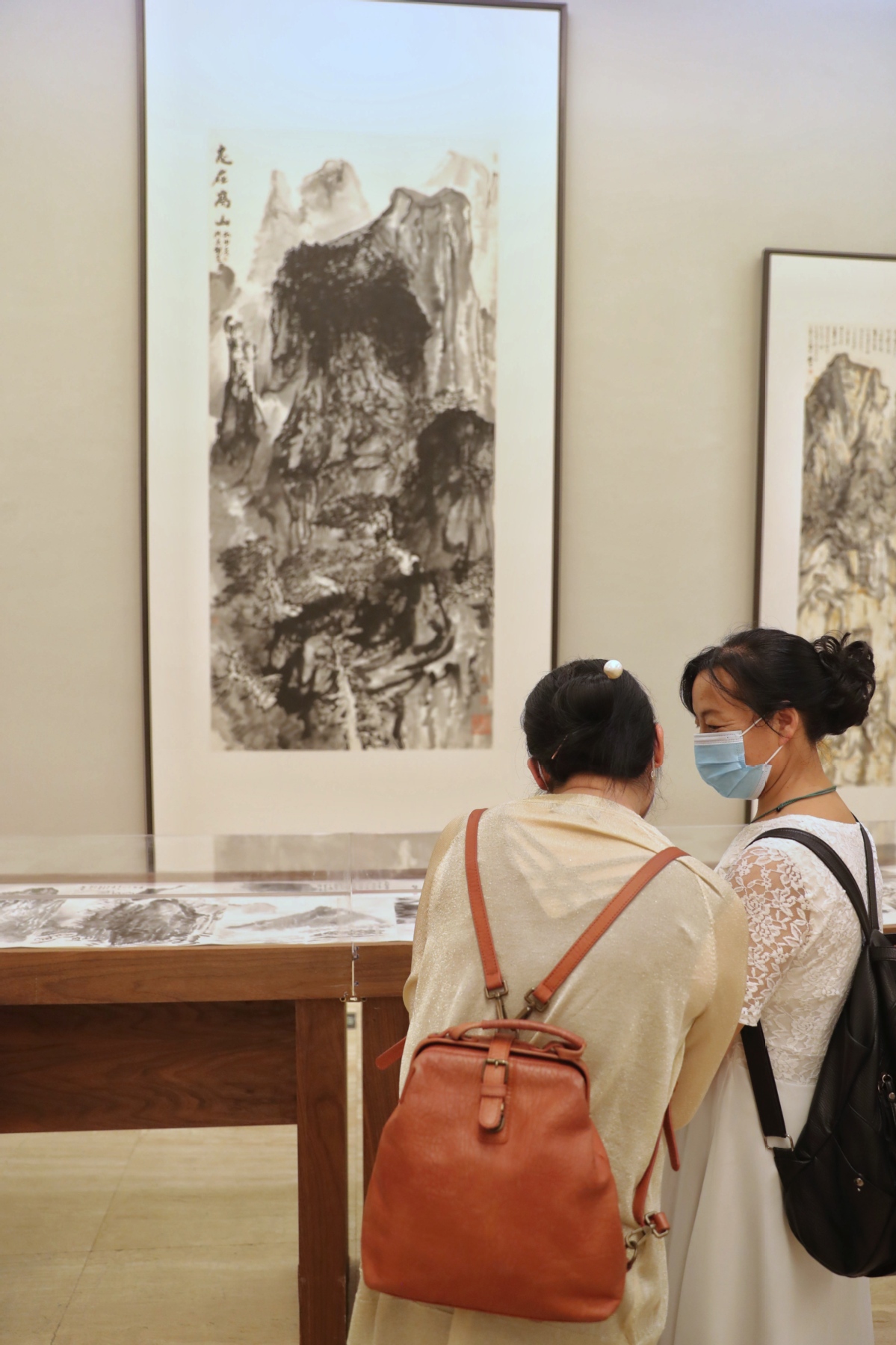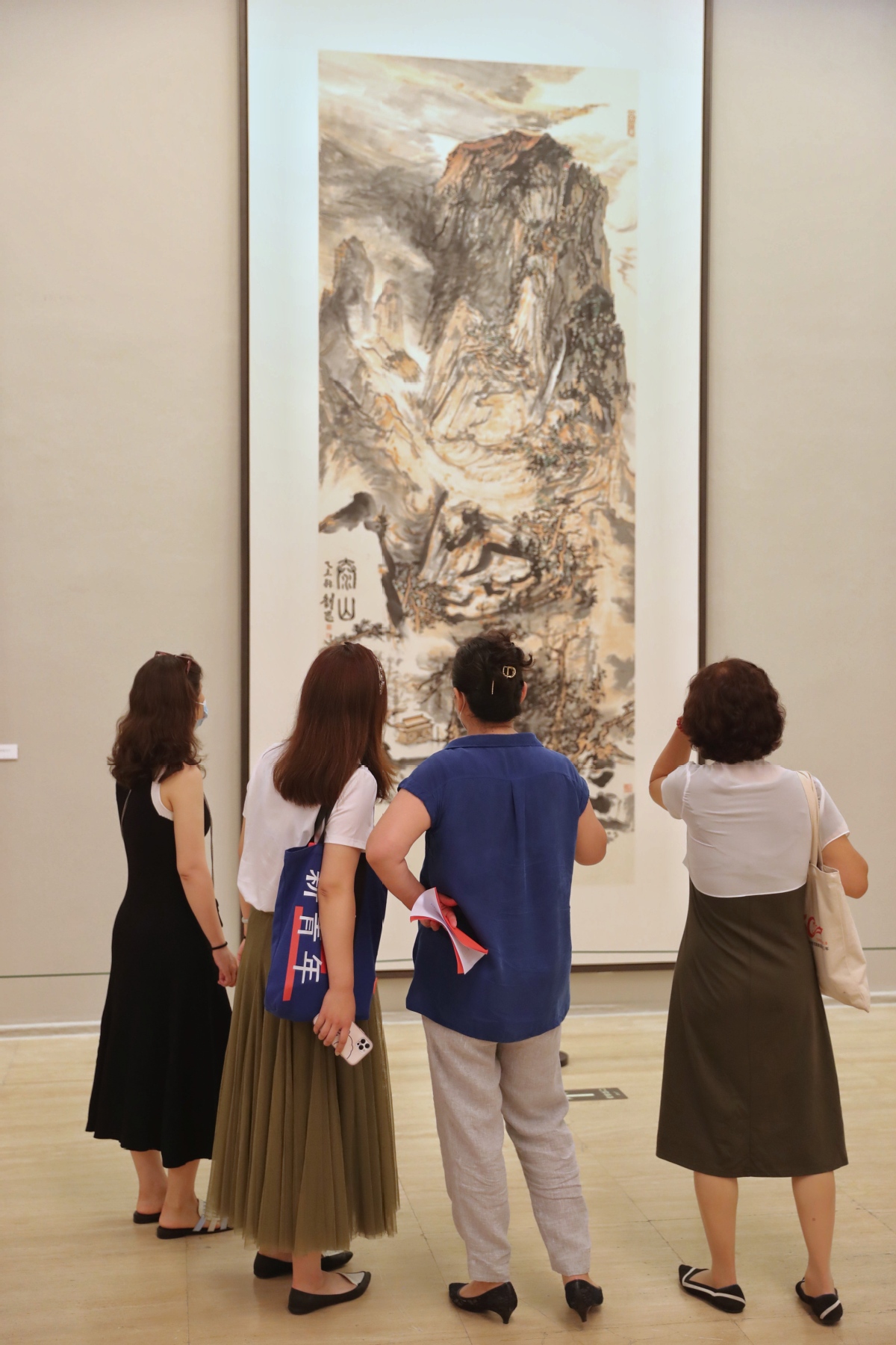 7月31日,观众欣赏“中国美术馆学术邀请系列展:望岳——刘罡山水画展”。(中国日报记者 姜东 摄)