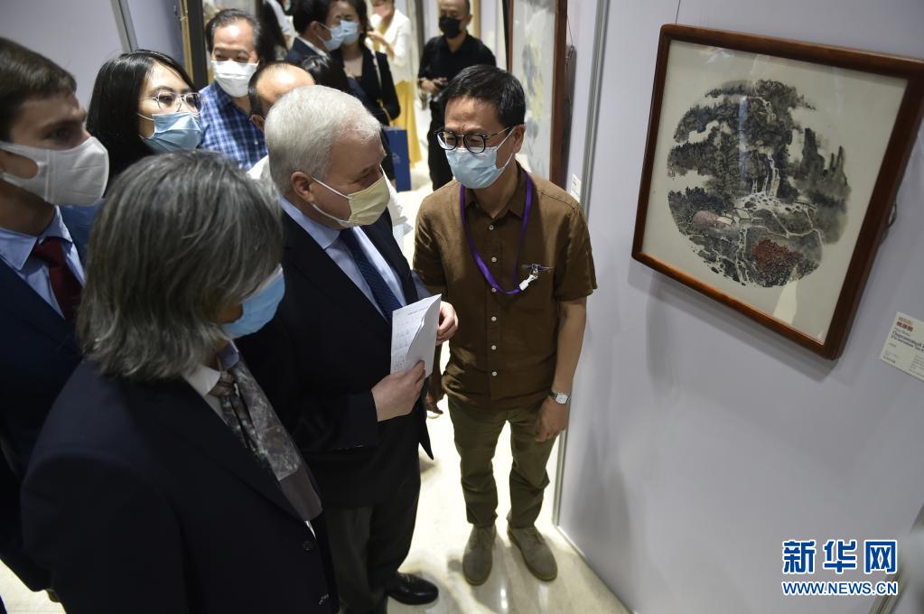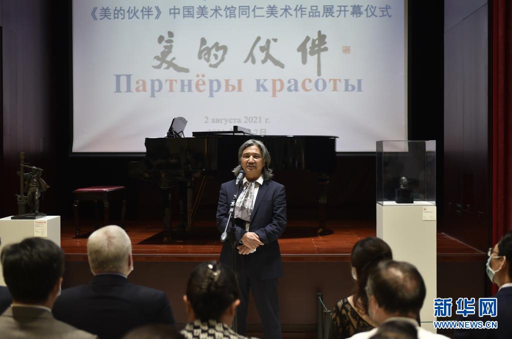 8月2日,中国美术馆馆长吴为山在展览开幕式上致辞。 当日,“美的伙伴——中国美术馆同仁美术作品展”在北京俄罗斯文化中心举行,共展出30多件绘画、雕塑、书法等类别作品,涵盖中国美术馆艺术家们的最新创作成果以及中国美术馆藏俄罗斯艺术家的部分作品。 新华社记者 鲁鹏 摄