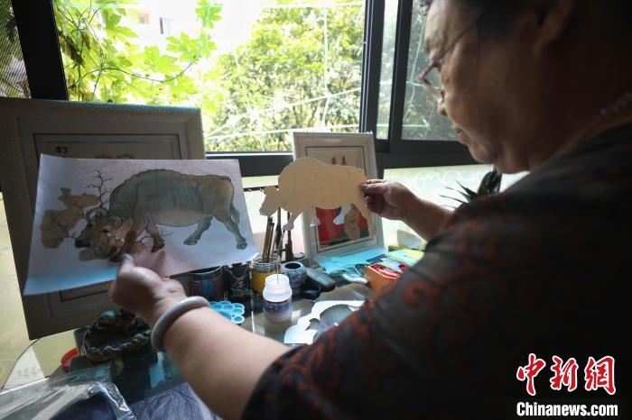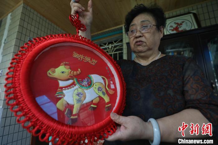 8月12日,尹守先在介绍她制作的生肖牛作品。 瞿宏伦 摄