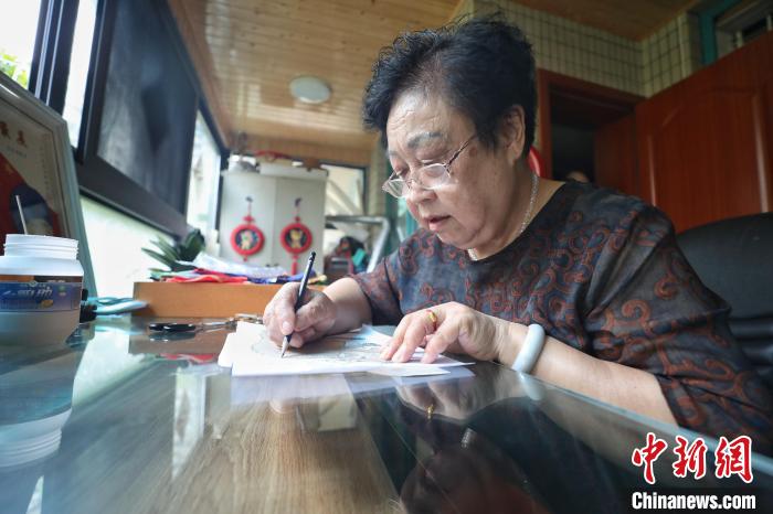 8月12日,尹守先在进行描图。 瞿宏伦 摄