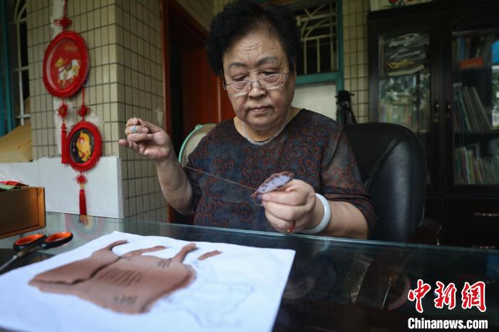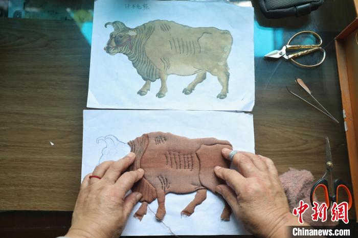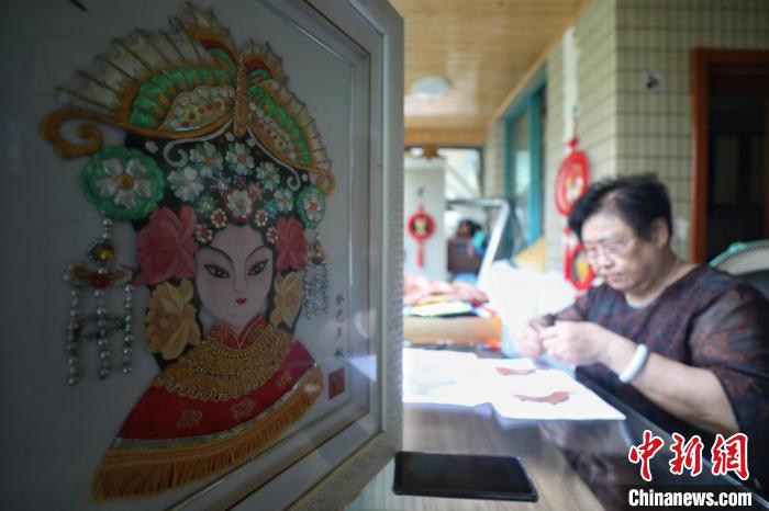 8月12日,尹守先制作的半成品布艺堆绣。 瞿宏伦 摄