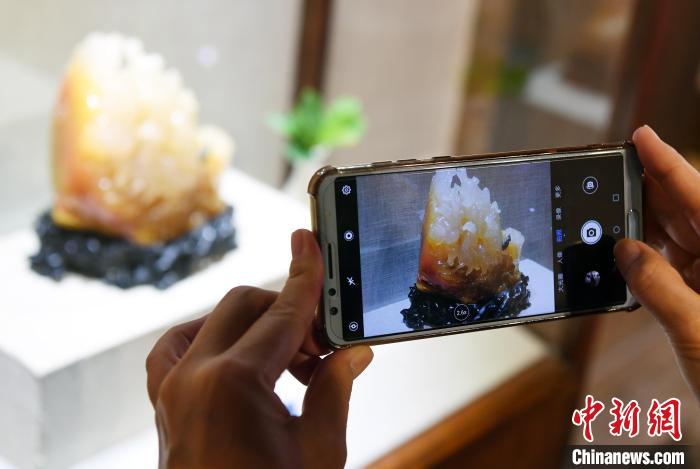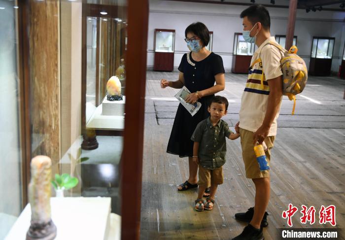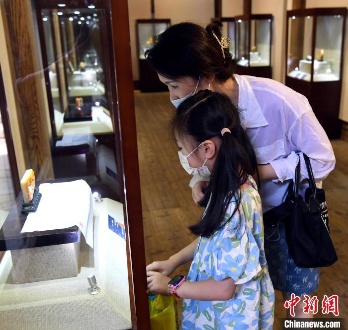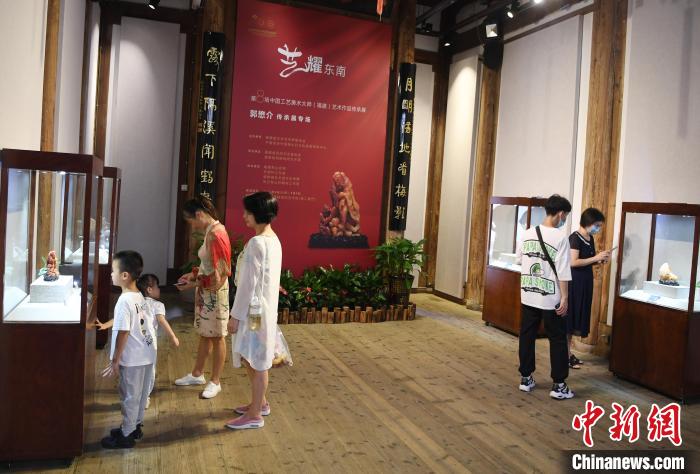 中国工艺美术大师郭懋介寿山石雕传承展吸引观众观展。 记者刘可耕 摄