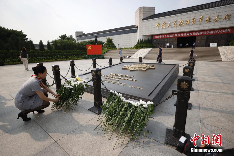 9月3日,北京,为纪念中国人民抗日战争暨世界反法西斯战争胜利76周年,由中国人民抗日战争纪念馆和俄罗斯斯大林格勒保卫战纪念馆联合举办的“斯大林格勒保卫战——大无畏精神和英雄气概的象征”专题展览在抗战馆开幕。展览将持续至11月3日,共展出珍贵历史图片约200张、文物63件,并辅以相关历史纪录影片。图为参观者在抗战馆外献花。 中新社记者 富田 摄