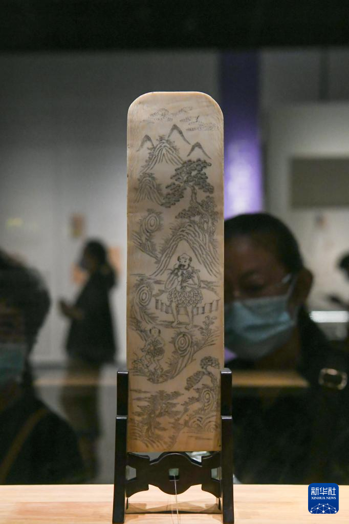 这是9月17日在“发现中医之美——中国传统医药文物特展”上拍摄的“神农尝药图”象牙牌。新华社记者 胥冰洁 摄
