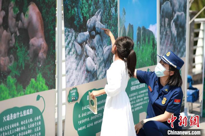 国庆带娃出游的刘女士表示,“主题图片展形式新奇、内容震撼,很多图片都是网络上没有的,让我们得以近距离感受追象护象的精彩瞬间。展现森林消防员守护生态、坚守奉献的同时,更为我们讲述了人与自然和谐共生的云南故事、中国故事,引起了我们对护林防火、保护生态的重视和关注。”与游客的积极互动,无形中拉近了森林消防队伍与群众的距离,游客们一边观看大象萌照,一边学展板上的森林防火安全小提示,在寓教于乐中让保护自然、守护生态的理念更加深入人心。