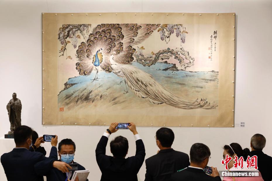 10月12日,云南昆明,美术作品《朝晖》吸引参观者拍照。《生物多样性公约》缔约方大会第十五次会议(COP15)第一阶段会议正在云南昆明举行。当日,作为COP15配套活动,“人与自然生命共同体”美术作品展在云南昆明开幕。 中新社记者 李嘉娴 摄