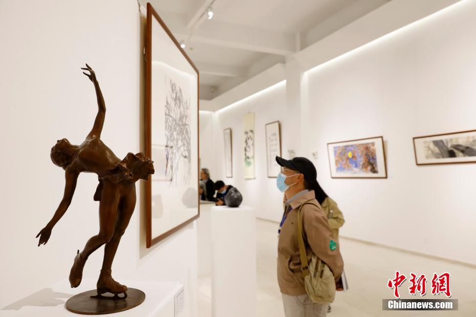 10月12日,云南昆明,参观者被展出作品吸引。《生物多样性公约》缔约方大会第十五次会议(COP15)第一阶段会议正在云南昆明举行。当日,作为COP15配套活动,“人与自然生命共同体”美术作品展在云南昆明开幕。 中新社记者 李嘉娴 摄