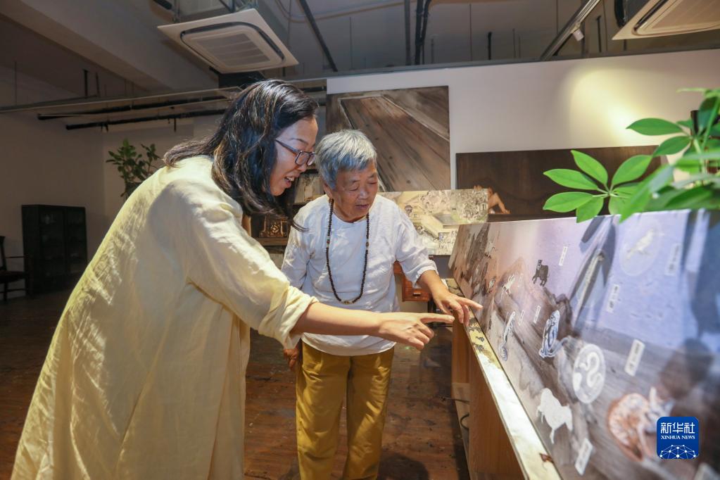 10月12日,尹玉凤(右)和艺术园区的艺术家交流,汲取创作灵感。