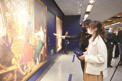 世界名画《宫娥》空降龙华中路地铁站,表现申城红色基因的水墨画《上海:红色起源地》亮相浦东机场……来来往往的市民游客足不出沪,在地铁站、候机厅抬眼便能感受东西方艺术的魅力。