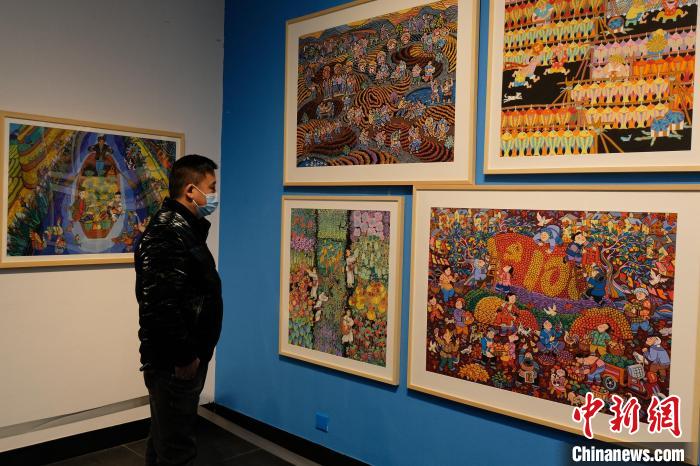 中新网贵阳11月12日电 (记者 石小杰)11月12日,2021多彩贵州文化艺术节·“铭记百年史·启航新征程”庆祝中国共产党成立100周年——六省区(市)农民画优秀作品巡回交流展在贵州美术馆开展。