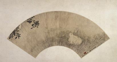 清李世倬《桂花月兔图扇页》,故宫博物院藏