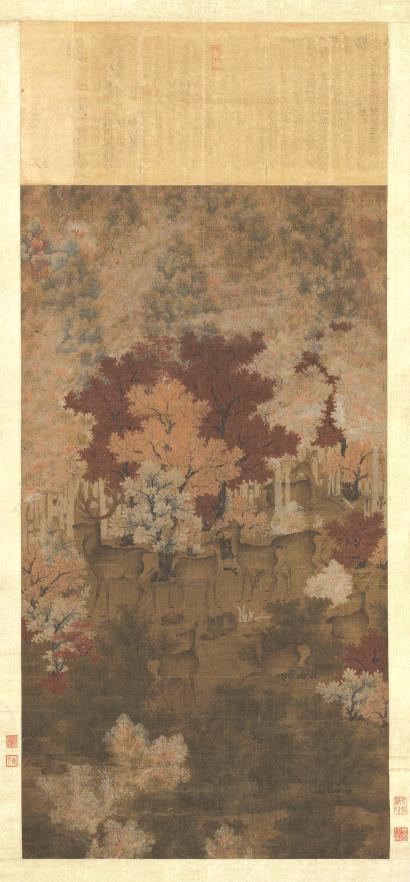 传五代《丹枫呦鹿图》,台北故宫博物院藏
