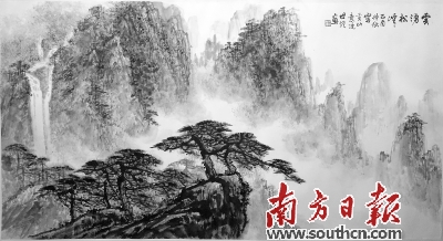 本次展览展出的梁世雄作品《云涌松峰》。岭南美术馆供图