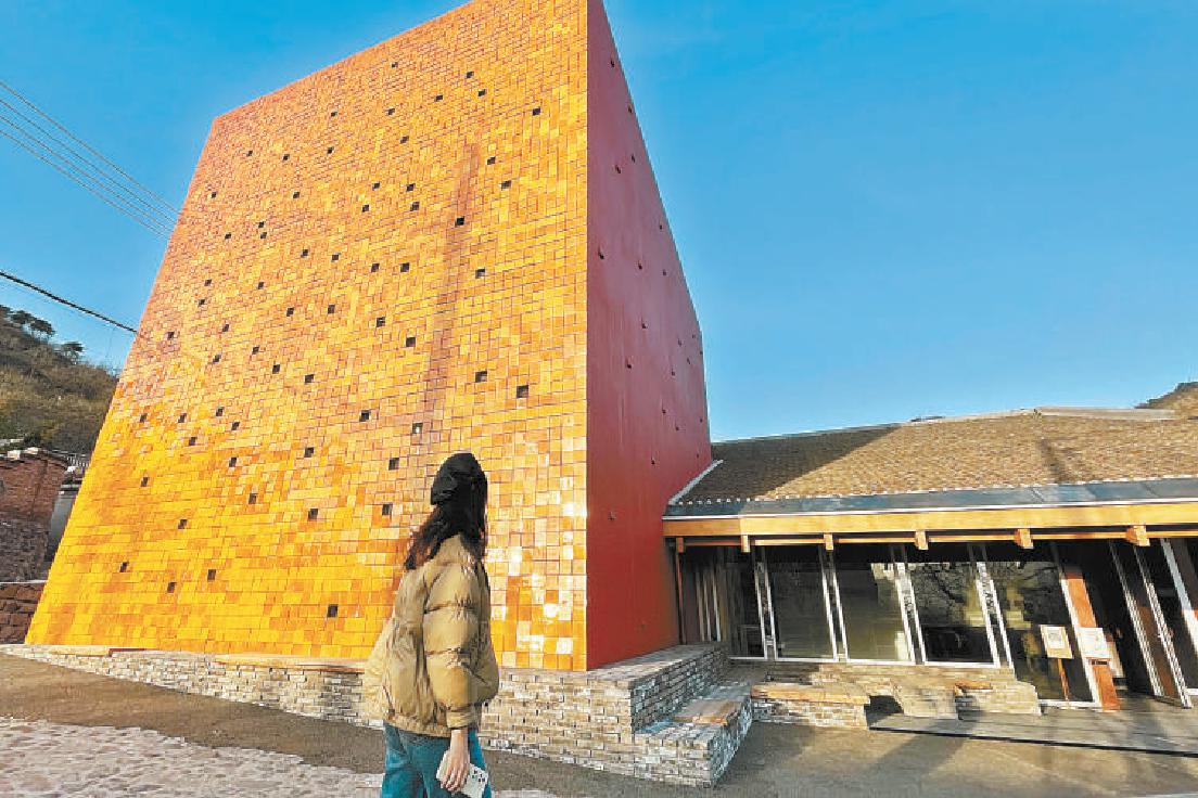 层叠的山峦上,逶迤的慕田峪长城仿佛近在咫尺;山脚下的村落里,一面金色的琉璃瓦墙光彩熠熠,指引着一座乡村美术馆的新坐标。近日,位于怀柔区渤海镇北沟村的瓦美术馆开馆,并通过举办“局部城市”艺术展,迎来许多观众打卡。