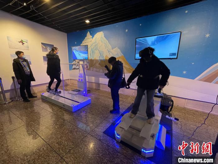 参观者体验VR模拟滑冰、滑雪 邢翀 摄