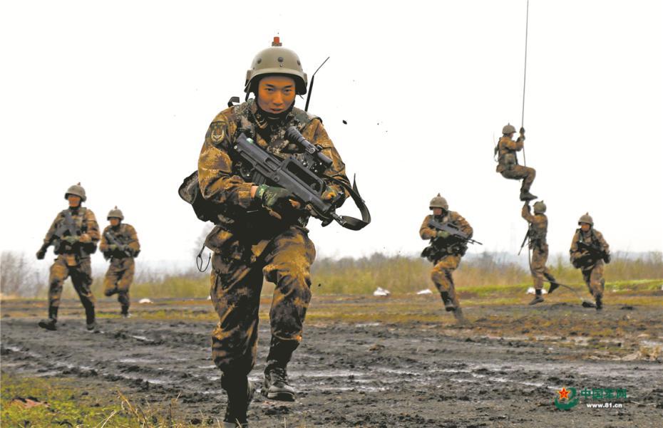 索降后迅速投入战斗。李文革 胡贺 解放军报特约通讯员 张欢朋 摄影报道 图片来源:中国军网