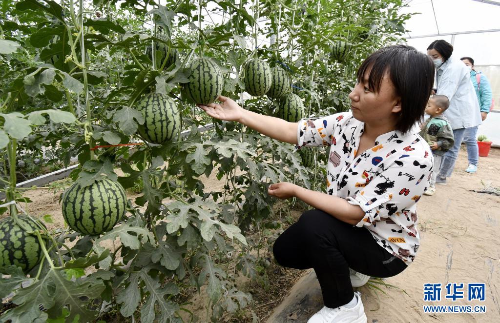 5月24日,市民来到北臧村镇永兴缘农产品产销专业合作社的西瓜大棚采摘西瓜。