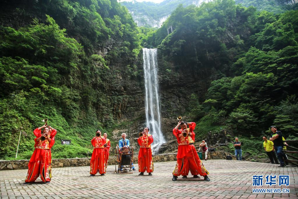 湖北省宜昌市秭归县组织非遗传承人和民间艺人进景区常态化为游客表演具有当地特色的民俗节目,让游客近距离感受当地民俗文化。