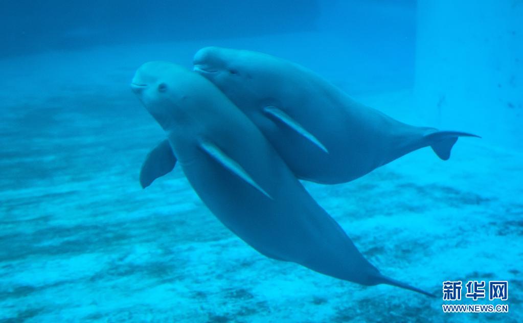 在中国科学院水生生物研究所白鱀豚馆里,生活着一对江豚母子——母豚洋洋和小江豚YYC。